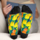 Chaussettes dans un motif de tulipes orange et jaune et feuilles verts dans un champ