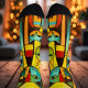 Chaussettes artistiques avec une peinture colorée amusante avec des chats mignons. Idéal pour une dame de chat fou et gentil pour Noël ainsi que d'autres jours.