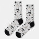 Parfaites pour tout amoureux des chats, ces chaussettes amusantes sont mignonnes motifs de dessins animés en noir et blanc qui sautent à la surface. En plus des chats sautants sont des visages de chats de dessin animé. Tout est placé sur un arrière - plan gris clair.