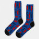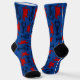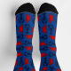 Chaussettes bleues foncées à motifs pour hommes ou femmes avec un design homard et crabes. Des homards bleus foncés et des crabes rouges rampent sur une couleur de fond bleu royal. Les orteils et les talons sont noirs. C'est un cadeau amusant pour tout amateur de crustacés, cuisinier de fruits de mer ou homme de mer.