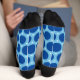 Les cercles bleus foncés, surlignés de bleu clair, sont carrelés à travers le produit avec de minuscules triangles blancs marquant le bord du bleu clair.