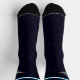 Une touche finale pour le musher bien habillé. Un chien avec un sac turquoise de traîneau superposé à un arrière - plan étoilé.