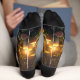 Cette oeuvre d'art présente un crâne orné, orné d'une couronne royale, intimement mêlé de vignes luxuriantes et de fleurs éclatantes. Des bougies à flickering ajoutent une lueur mystique, jetant des ombres dynamiques qui donnent vie à la scène. Tout cela dans un cadre forestier serein, créant un équilibre saisissant entre beauté et mystère.