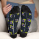 Fusée spatiale jaune et bleu sur design arrière - plan bleu foncé.