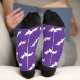 Drôle chaussettes design Halloween pour enfants et adultes. Avec un arrière - plan violet et un motif de chauves-souris blanches, ces chaussettes seront parfaites pour cette saison d'Halloween.