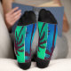 Beau coucher de soleil avec palmiers avec orteil noir et chaussettes talon