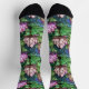 Belle paire de chaussettes d'équipage avec un motif de lotus sans soudure en vitrail.