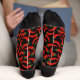 Piments rouges chauds. Motif sans couture. Couleur arrière - plan personnalisée. Couleur de bande supérieure personnalisée. Texte personnalisé sur chaque chaussette.