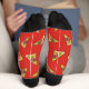 Icône de tranche de pizza. Motif sans couture. Couleur arrière - plan personnalisée. Couleur de bande supérieure personnalisée. Texte personnalisé sur chaque chaussette.