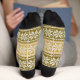 Ces jolies chaussettes sont parfaites pour la saison des Fêtes, mais peuvent facilement passer par les saisons d'automne et d'hiver. Ils présentent un motif répétitif d'images de fleurs de poinsettia imbriquées. Les images couleur crème alternent en arrière - plans dorés foncés et clairs, avec des rayures entre les deux.