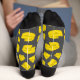 Fromages jaunes. Motif sans couture. Couleur arrière - plan personnalisée. Couleur de bande supérieure personnalisée. Texte personnalisé sur chaque chaussette.