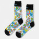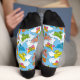 Caricatures d'animaux de bébé. Escargots, papillons, oiseaux, abeilles, soleil et nuages. Motif sans couture. Couleur arrière - plan personnalisée. Couleur de bande supérieure personnalisée. Texte personnalisé sur chaque chaussette.