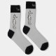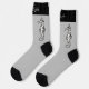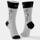 Icône stylisée en noir et blanc d'un hippocampe. Couleur arrière - plan personnalisée. Couleur de bande supérieure personnalisée. Texte personnalisé sur chaque chaussette.