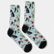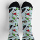 Les mignons Schnauzers de Noël avec sel et poivre et les manteaux noirs et argentés portent des chapeaux de Père Noël, des bois et des chandails de Jacquard sur un arrière - plan bleu avec des ornements épars motif.