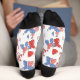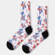 Un design mignon et amusant pour votre prochaine fête 4 juillet! Portez ces chaussettes avec un motif de ballons rouges et bleus portant des étoiles et des arcs rayés. Le motif est entrecoupé de mots 4 juillet et de feux d'artifice patriotiques.