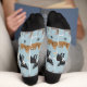 De mignons chihuahua chiens en noir, marron, bronze, crème, gris et bleu s'assoient et tiennent des os de chien éparpillés et motifs empreintes de pattes.
