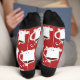 Chaussettes de Noël avec un motif qui présente une tasse souriante de cacao chaud avec un sucre de canne et plusieurs guimauves joyeuses sur un arrière - plan rouge. Ajoutez une paire ou deux à votre panier, ramenez-les chez vous, puis profitez-en sur vos pieds ! Sucre de canne Pain d'épices Père Noël Chaussettes de Noël Sweetsham Nourriture Art | ©Melissa Patton - Concepteur/Illustrateur
