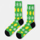 Fun green Christmas socks patterned with yellow pickleballs and snowflakes. Perfect Xmas gift for pickleball players.