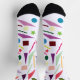 Composition abstraite vibrante avec triangles, cercles, étoiles et lignes dynamiques dans des couleurs vives sur une toile noire. Énergétique et ludique, adapté au design moderne, aux projets artistiques et à l'audacieuse image de marque.