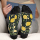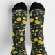 Citrons et motifs feuille clairs sur un arrière - plan vert foncé.