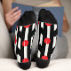 Chaussette Coeurs Noirs Rouges Sur Bandes Blanches Noires