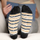 Améliorez votre jeu de chaussettes avec nos chaussettes rayées noires et en terre cuite. Présentant un design cool rétro alliant style classique et moderne, ces chaussettes unisex sont parfaites pour elle et pour lui.