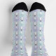 Quatre carrés de bleu pâle et de violet sont décorés de bonhommes de neige en chapeaux et vêtements d'hiver, comme des toboggans, des foulards et des mitaines. La couture blanche ajoute une touche décorative, donnant au motif répétitif l'aspect d'une courtepointe, créant une sensation de douceur pour l'hiver.