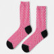 Entrez dans l'esprit d'Halloween avec cette simple paire de chaussettes ghoulish avec des crânes blancs éparpillés dans un arrière - plan rose vif contrastant dans un motif à pois de polka.