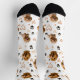 These personalized dog photo Valentine socks feature your pet’s photo on a clean white background with soft hearts and paw prints, creating a timeless and adorable custom gift for dog lovers.