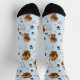 These personalized dog photo Valentine socks feature your pet’s photo in a charming blue design filled with hearts and paw prints — the perfect balance of cute, fun, and meaningful.