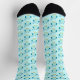 Cette superbe paire de chaussettes d'équipage à motifs présente un dessin mignon d'une chouette bleue aux yeux somnolents, un bec large ouvert et de jolies plumes moelleuses. Le hibou tient un ballon bleu poudreuse. Il y a du texte bleu pâle à l'intérieur du ballon qui dit, "Petit garçon".