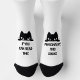 Chaussettes mignonnes, blanches et noires, avec un petit chat et une citation romantique que l'on customise facilement.