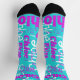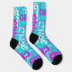 Chaussette Cute Retro Hot Pink Blue Nom personnalisé Motif