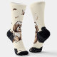 These playful Shih Tzu socks bring instant charm to any outfit. A soft cream base sets the stage for a repeating pattern of cute brown‑and‑white Shih Tzu illustrations, each sitting sweetly among scattered little bones. Black cuffs and toes add a crisp contrast, while the “L” and “R” markings at the top give them a fun, quirky touch. Cozy, cute, and full of personality—perfect for dog lovers who enjoy wearing their joy.