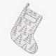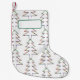 Chaussette de Noël décorée de sapins stylisés . Vous pouvez la personnaliser en ajoutant un prénom ou une expression comme Merry Christmas .