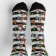 Motif décoratif de Noël Stripes thème Conception avec des flocons de neige, rennes, sucre de canne de Noël, arbres de Noël, elfe, santa Claus, étoiles de Snowman et boules de Noël sans couture répétition motif Design SOCKS