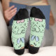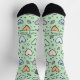 Cute design of scribbled hearts on light green ground. Plus space for your text or name on the foot. Playful socks for playful girls and boys.