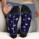 Chaussette Élégant Elegant Or Etoiles Marine Blue Monogramme