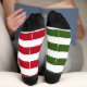 Gardez vos pieds douillets pour les vacances d'hiver avec ces Chaussettes de Noël Vertes et Blancs Funky. Le design moderne a une chaussette avec des rayures vertes et blanches et la deuxième chaussette est rouge et blanc rayures horizontales. Vous pouvez customiser les couleurs pour correspondre à votre mode si nécessaire. Idée cadeau parfaite pour la saison des fêtes !