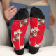 Chaussettes fleuries jolies et festives. Palette de couleurs rouge et blanc.