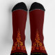 Double caducée de serpent. Icône créée avec des éléments de flamme. Couleur arrière - plan personnalisée. Couleur de bande supérieure personnalisée. Texte personnalisé sur chaque chaussette.