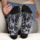 Toutes les chaussettes Unisex sont recouvertes d'une Fleur Dahlia Noire et Gris aux accents Blancs.