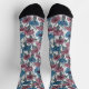 Chaussette Fleurs de maïs rose et bleu sur blanc