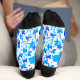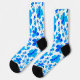 Chaussettes à motif floral à l'aquarelle avec fleurs dans les tons bleu profond sur un arrière - plan blanc. De grandes fleurs détaillées côtoient des fleurs plus petites et plus simples et des tiges délicates, pour une sensation botanique aérée.