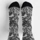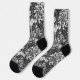 Chaussettes dans un Art Nouveau, imaginaire motif floral sous l'eau d'algues gracieuses, feuilles et fleurs, basé sur un design textile vintage William Morris, numériquement rehaussé et coloré en blanc et gris charbon sur un arrière - plan noir