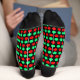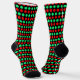 Des rayures pointillées vertes et rouges sur des Chaussettes noires. Idéal pour Noël.