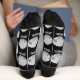 Chaussettes disco amusantes avec un motif de boules disco et le mot disco sur un arrière - plan noir. Le mot est personnalisable. Fun Novelty Disco Ball Chaussettes Conception de jour férié | ©Melissa Patton - Concepteur/Illustrateur