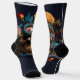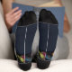 Chaussette Goth Crâne, serpent bleu et fleurs sur bleu