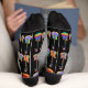Chaussettes de Noël personnalisées et colorées Acoustic & Electric Guitar avec chapeaux de Noël Ajoutez simplement un nom à Rock autour du sapin de Noël avec ces chaussettes audacieuses et festives avec un motif coloré de guitares acoustiques et électriques portant des chapeaux de Père Noël. Illustré dans des teintes psychédéliques vibrantes de rouge, bleu, jaune et vert, ce design ludique est un cadeau de vacances parfait pour les guitaristes, musiciens et mélomanes. Ces nouvelles chaussettes de Noël sont idéales comme remplissage de bas, cadeau de Père Noël Secret, ou accessoire de vacances amusant pour quiconque aime la guitare ou la musique live. Lumineux, gais et plein d’esprit festif, ils seront sûrs d’avoir le bon accord cette saison des Fêtes. Oeuvre originale aquarelle de l'artiste Catherine Sweetman.
