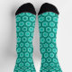 Chaussettes en imprimé kimono japonais - Hexagons de nidification avec un motif de fleur central dans un aqua profond turquoise / turquoise, blanc et léger sur un arrière - plan moyen turquoise